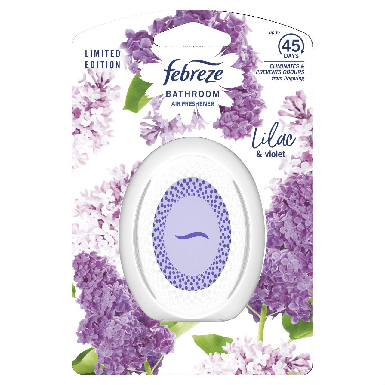 Febreze Bathroom Air Freshener cleans away odours and leaves a light fresh scent Odour Eliminator – prevents odours from lingering Leaves behind a light fresh scent Each Bathroom device last for 45 days Easy to use, 1 push button activation No electricity or plugs required Discreet as well as stylish Lilac & Violet fragrance creates a fruity ambiance in your home