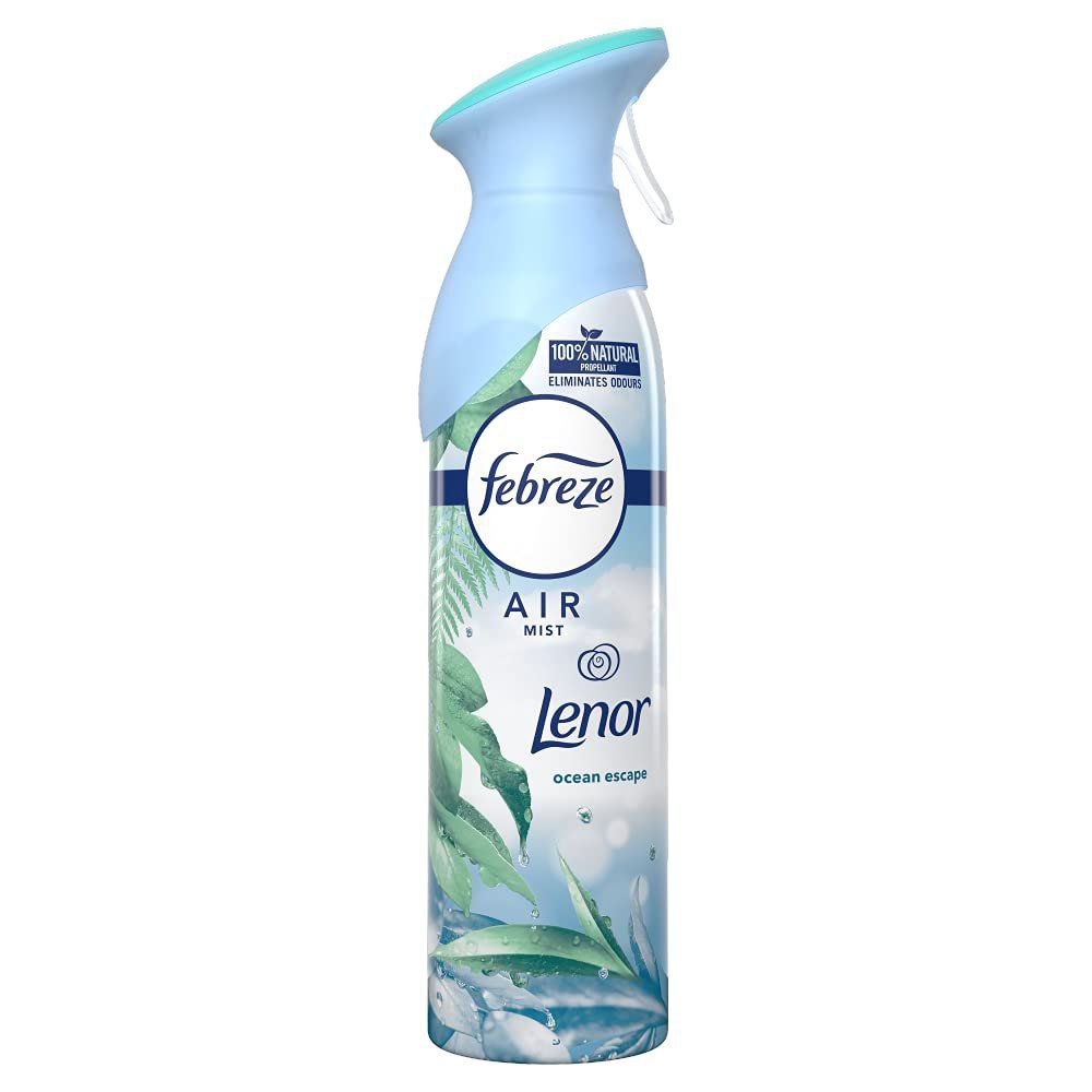 Febreze Air Freshener with Odourclear technology fights odours, leaving a light fresh scent. Ocean escape fragrance is inspired by the bracing ocean mist that revitalises you when walking on the beach on a sunny morning. Febreze Aerosols are non-flammable and a perfect fit for any room in the house.