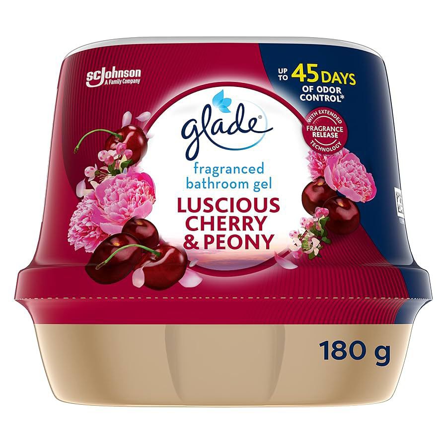 Enter a tranquil retreat with Glade’s Floral Cherries bathroom gel, designed with a dual post system to maximize the release of its fragrance. Its 360° design and distinctive elliptical shape ensure a steady infusion of juicy cherries, peony, and white woods, evoking the beauty of blooming gardens and refreshing spring days.