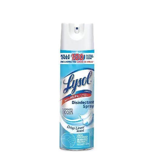 Kill 99.9% of Viruses and Bacteria with Lysol® Disinfectant Spray on hard and soft surfaces throughout your home.