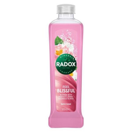 Radox Feel Blissful Bath Soak is a soothing pink bubble bath with a blend of herbs, minerals, calendula, and rose scent.
