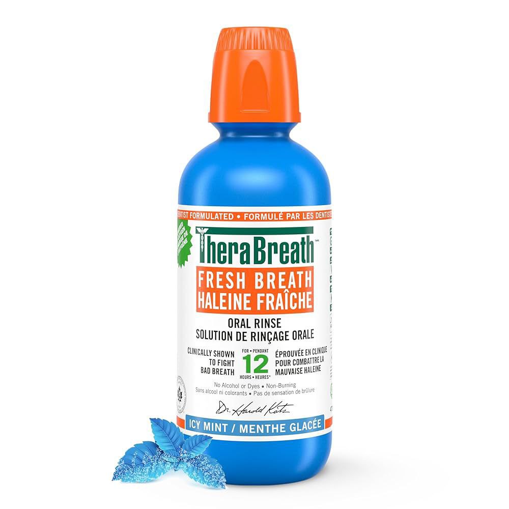 Our time-tested oral rinse also is available in an invigorating Icy Mint flavour. We’ve incorporated all the bad breath fighting technology of our original flavor of TheraBreath Oral Rinse, but now with a cool blast of icy mint. Guaranteed to fight bad breath!